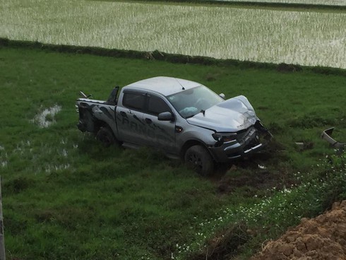 Chiếc xe ô tô bán tải lao xuống ruộng. |