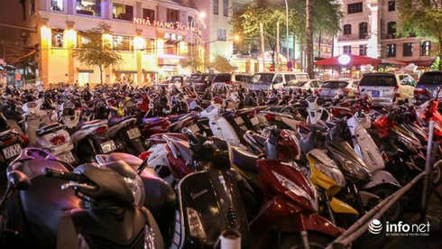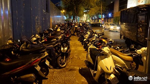 Hình ảnh bãi giữ xe trên đường Thi Sách vào tối ngày 9/8. |