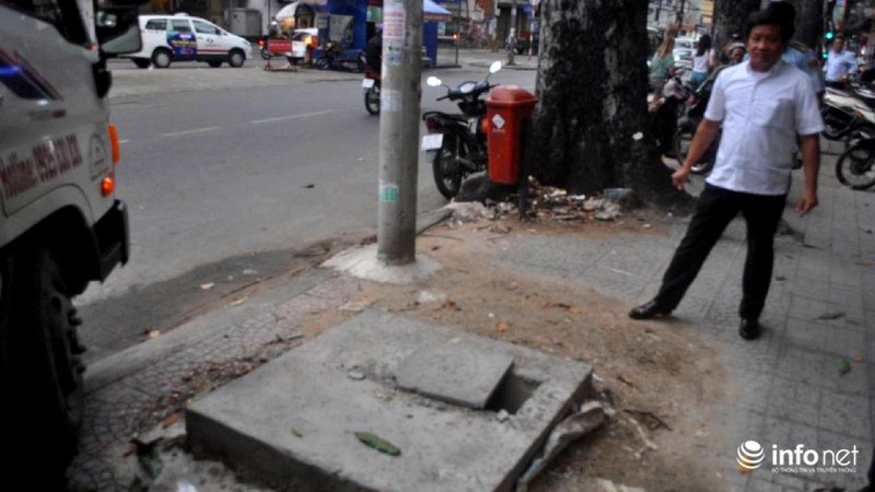 Không chỉ phạt các loại xe vi phạm, ông Hải còn yêu cầu xử lý một nắp hố ga nhô hẳn lên phần vỉa hè, ảnh hưởng lớn đến người đi bộ. |