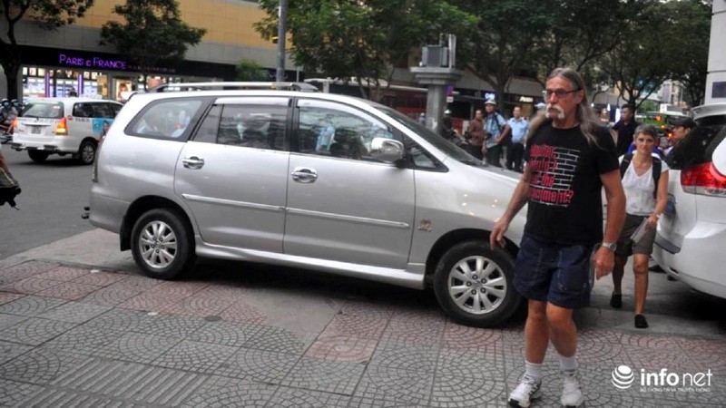 Những chiếc ô tô đậu chiếm hết vỉa hè khiến người đi bộ phải luồn lách qua những khe hẹp, hoặc đi tràn xuống lòng đường. |