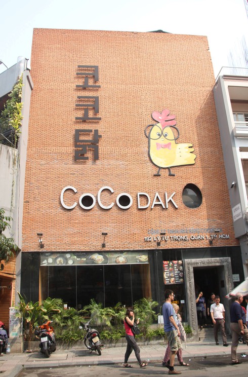 Gạch đỏ bịt kín mặt tiền nhà hàng CocoDak. |