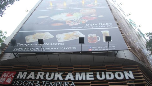 Cùng trên con đường này, một nhà hàng khác tên Marukame Udon tại địa chỉ 215 – 217 cũng bị lập biên bản xử phạt hơn 40 triệu đồng vì xây dựng bảng quảng cáo không phép và không thông báo nội dung quảng cáo như quy định. Theo quan sát, bảng quảng cáo của cửa hàng này gần như trùm kín mặt tiền.