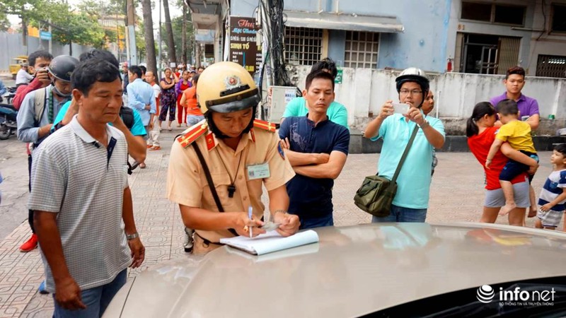 Cũng trong chiều ngày 13/8 hàng chục chiếc xe ô tô bị lập biên bản xử phạt vì dừng, đậu không đúng nơi quy định. |