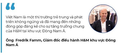 Trong khi đó, với việc mở mới 4 cửa hàng, H&M nâng doanh thu lên hơn 653 tỷ đồng trong năm tài chính 2018, gấp 4,3 lần năm 2017. Như vậy, có thể mỗi ngày, người Việt chi khoảng 1,8 tỷ đồng để mua quần áo thương hiệu này. “2018 là một năm thật tuyệt vời với H&M tại Việt Nam. Là một thị trường trẻ trung và phát triển không ngừng, Việt Nam đã mang đến những đóng góp đáng kể cho sự tăng trưởng chung của chúng tôi tại khu vực Đông Nam Á”, ông Fredrik Famm, Giám đốc điều hành H&M khu vực Đông Nam Á nhận định.