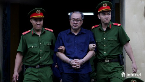 Bị cáo Phạm Công Danh được đưa ra xe sau phiên xử chiều ngày 13/1. |