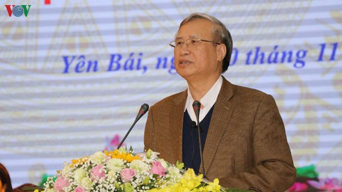 | Thường trực Ban Bí thư Trần Quốc Vượng phát biểu tại hội nghị tiếp xúc cử tri tỉnh Yên Bái. |
