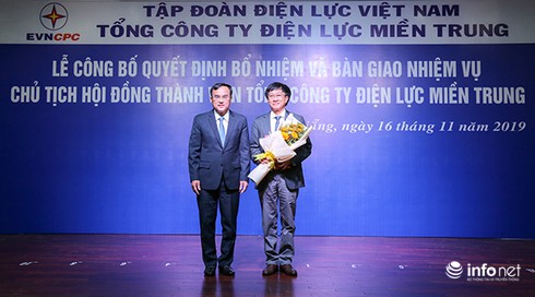 Chiều 16/11, tại Đà Nẵng, đã diễn ra lễ công bố quyết định bổ nhiệm và bàn giao nhiệm vụ Chủ tịch Hội đồng thành viên Tổng Công ty Điện lực miền Trung (EVNCPC) giữa ông Võ Quang Lâm, Phó tổng giám đốc EVN kiêm Chủ tịch HĐTV EVNCPC với ông Trương Thiết Hùng, Chủ tịch HĐTV Tổng Công ty Phát điện 2 (EVNGENCO2).