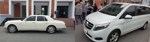 Điểm chung của hai người là đều đến tòa trên những chiếc xe hạng sang - siêu sang. Ông Vũ đi Bentley, còn bà Thảo đi Mercedes-Benz V 250. |