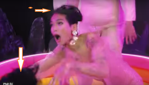 Sau khi bị dìm xuống bể bơiBB Trần tung cả tóc giả |
