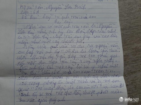 Mỗi khi có đồ gì ăn anh ấy đều trốn vào trong phòng ăn một mình và bị mẹ em quát “sao mày không cho em ăn với” và sau đó bị mẹ tát cho “không trượt phát nào”. Em rất yêu quý anh”.
