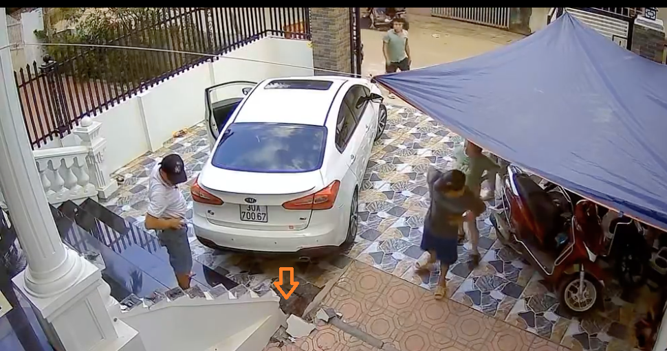 Theo đó, một đoạn clip dài 57 giây ghi lại cảnh tài xế lùi chiếc ô tô màu trắng mang BS 700.XX đã gây ra tình huống va chạm với lan can cầu thang trước cửa nhà. Hậu quả, phần lan can đó đổ sập xuống một cách nhanh chóng.