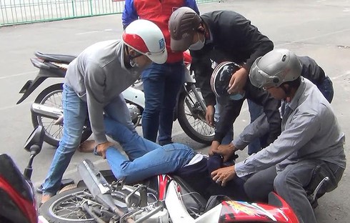 Các đối tượng đi giao ma túy bị công an khống chế, bắt giữ. (Ảnh: Công an cung cấp) |