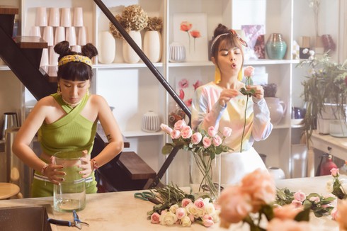 Không chỉ vậy, bối cảnh với nhiều màu sắc rực rỡ của hoa tươi, cùng loạt trang phục và phụ kiện mang phong cách hiện đại, hợp xu hướng giới trẻ đã góp phần mang đến một làn gió mới cho sản phẩm âm nhạc của Phạm Quỳnh Anh.