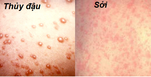 Hình ảnh nốt thủy đậu và nốt phát ban của sởi. |