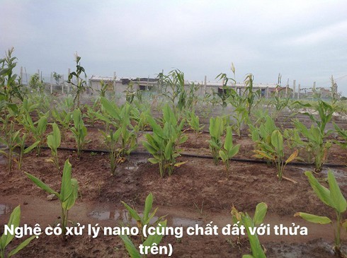 Trồng nghệ không sử dụng phân bón nano, cây kém phát triển so với cây nghệ có dùng phân bón nano. |