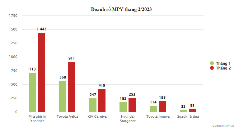 Phân khúc MPV tháng 2: Mitsubishi Xpander bật tăng, Suzuki Ertiga vẫn 'lẹt đẹt'
