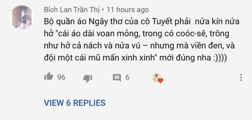 Đặc biệt, ca sĩ Bảo Thy bày tỏ sự phấn khích khi trực tiếp vào bình luận bên dưới MV. Nữ ca sĩ cho rằng ý tưởng thực hiện MV “đỉnh”, đồng thời kêu gọi những ai đang có nhiều tâm trạng thì hãy vào xem MV khoảng... 100 lần.