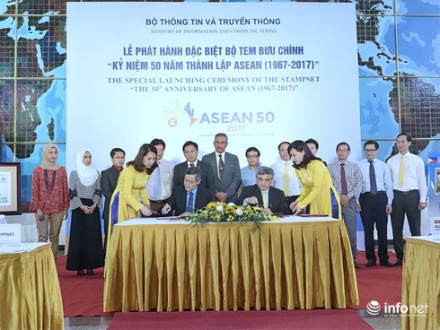 Lễ phát hành đặc biệt bộ tem bưu chính “Kỷ niệm 50 năm thành lập ASEAN (1967 - 2017)” vừa được Bộ TT&TT, Tổng Công ty Bưu điện Việt Nam tổ chức chiều 8/8 tại Hà Nội.