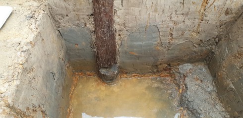 Trước đó, trong quá trình đào huyệt ở khu vực nghĩa địa, nằm về phía Bắc - Tây Bắc khu vườn cau, người dân cho biết có gặp phải những cọc gỗ lớn.