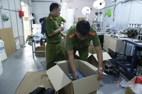 Lực lượng công an phát hiện hàng chục ngàn khẩu trang giả. |