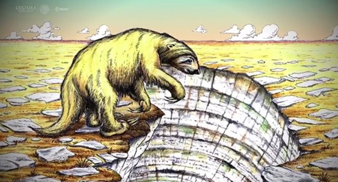 Hình vẽ một con lười khổng lồ. (Nguồn: INAH TV) |
