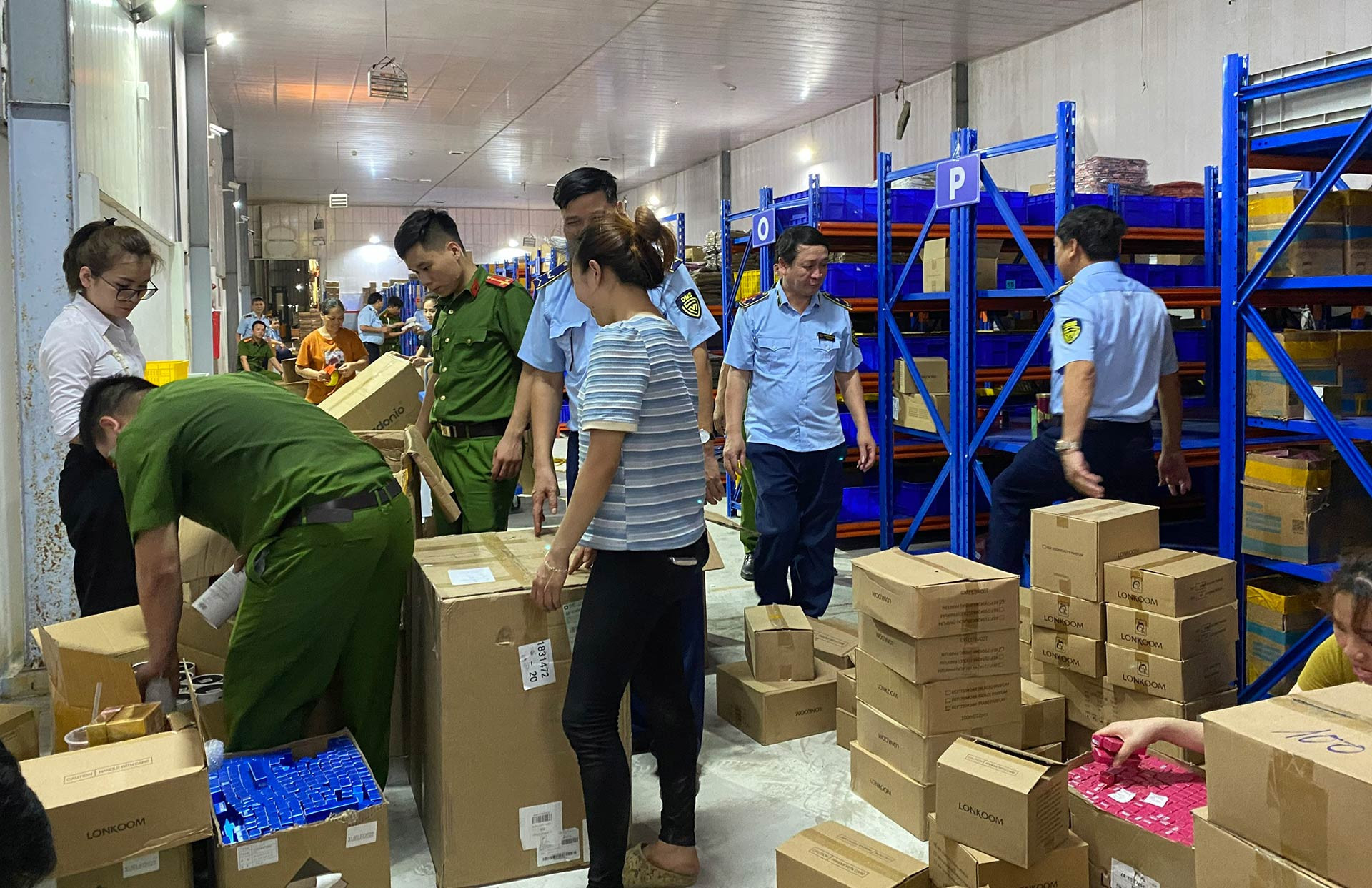 Tại thời điểm kiểm tra, lực lượng chức năng phát hiện gần 23.000 sản phẩm thuộc các nhóm hàng như điện tử, mỹ phẩm, quần áo, đồ điện gia dụng được xếp ngay ngắn, chuyên nghiệp trên các kệ hàng đều có dấu hiệu nhập lậu, không rõ nguồn gốc xuất xứ.