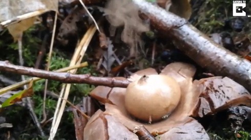 Joanna Szturemska ghi lại cảnh tượng nấm gaestrum phun bào tử để sinh sản khi bao chứa bào tử bị tác động trong công viên Sankey Valley, Warrington, Anh, Story Trender hôm 10/1 đưa tin.