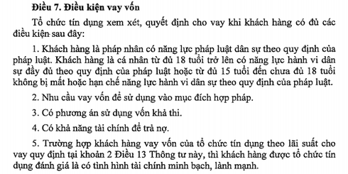 Điều 7 Thông tư 39/2016/TT-NHNN của NHNN quy định về Điều kiện vay vốn. |