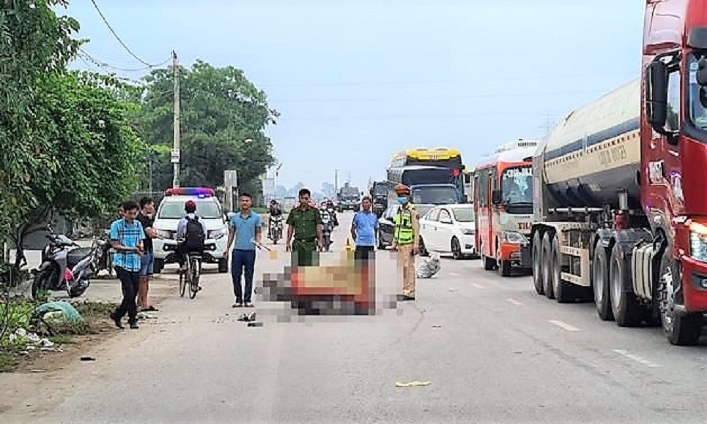 Nhiều người dân có mặt tại đây nhận định, có khả năng chiếc xe máy đã đâm vào phía sau một xe ô tô tải chạy cùng chiều phía trước dẫn đến tai nạn tử vong.