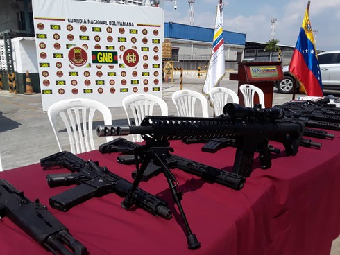 Các nhân viên của Lực lượng Vệ binh Quốc gia và Cục Liên hợp Quốc gia Hải quan và Thuế (SENIAT) của Venezuela mới đây đã thu giữ được 19 khẩu súng trường các loại từ một máy bay chở hàng tại sân bay quốc tế Arturo Michelena ở thành phố Valencia, tỉnh Carabobo (Venezuela).