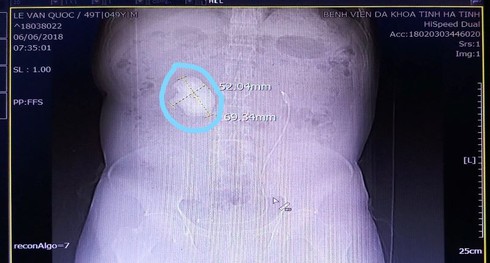 Trước đó, bệnh nhân Q. xuất hiện đau nhiều hai bên hông, đi tiểu buốt nên được người nhà đưa vào Bệnh viện huyện Đức Thọ. Tại đây, bác sĩ phát hiện bệnh nhân có sỏi thận rất to nên đã cho chuyển lên bệnh viện tỉnh.