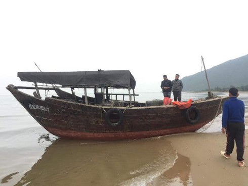 Phát hiện tàu có chữ Trung Quốc dạt vào bờ biển Hà Tĩnh