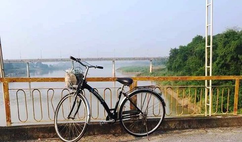 Thiếu nữ để lại chiếc xe đạp trên cầu treo Dùng (cũ), nghi nhảy cầu tự tử. |