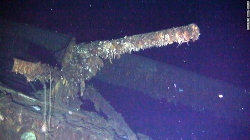 Ảnh chụp pháo của tàu Dmitri Donskoii dưới lòng biển, do công ty Shinil Group cung cấp. |