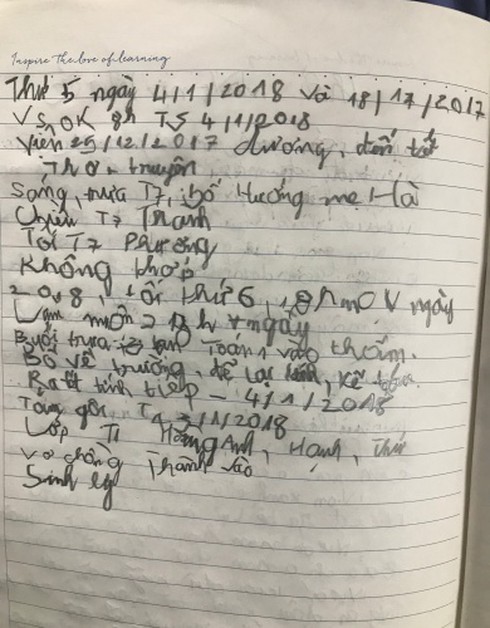 Những nét chữ còn nguệch ngoạc trong sổ nhật ký của anh Hải. Ảnh: Nam Phương. |
