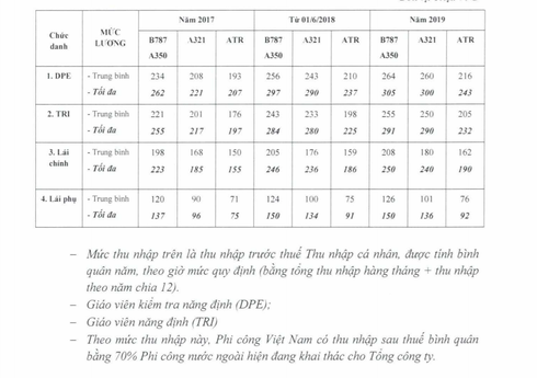 Sau khi điều chỉnh thì phi công Việt của Vietnam Airlines có thu nhập sau thuế bình quân bằng 70% phi công nước ngoài đang khai thác cho công ty.