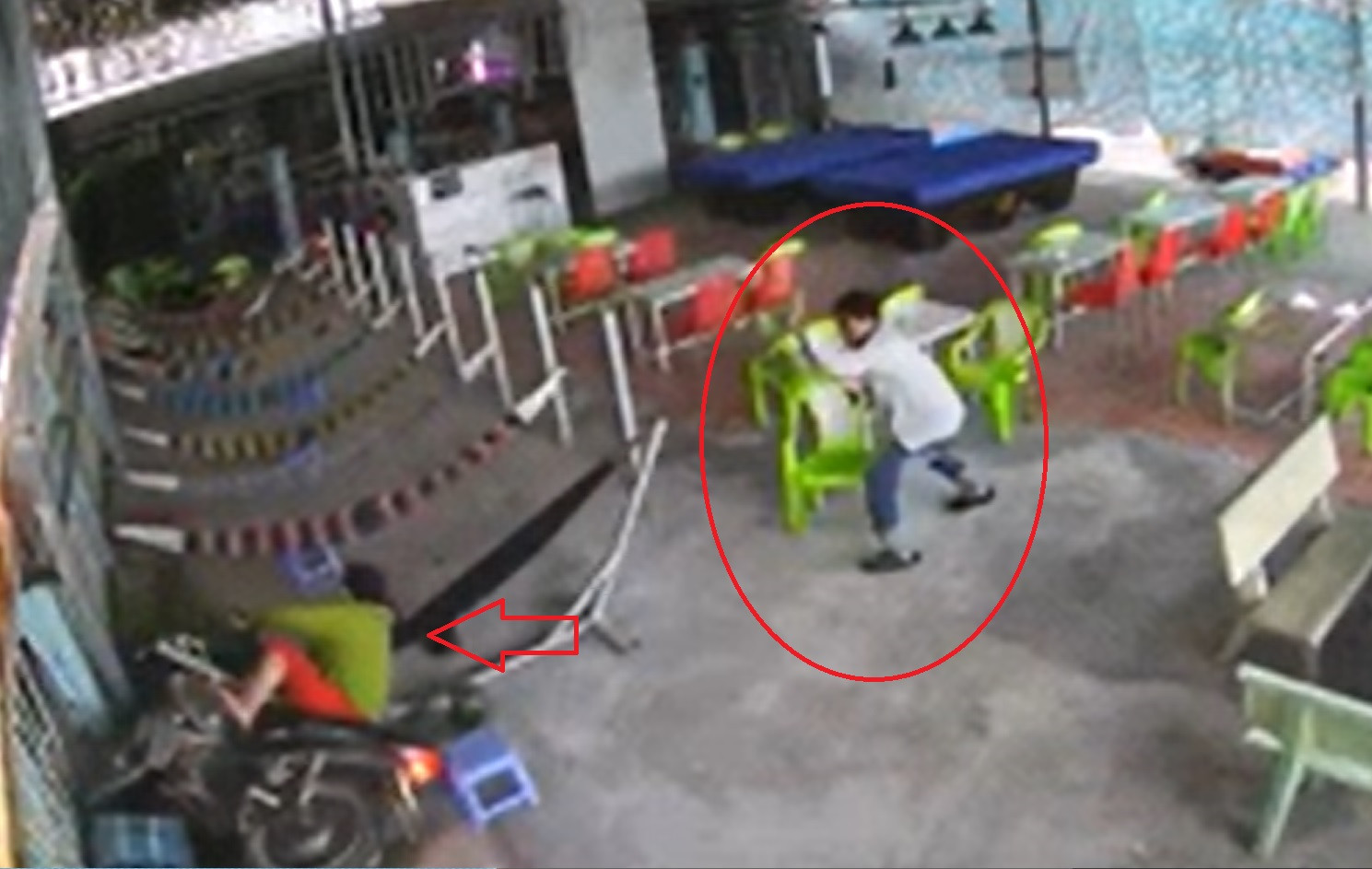 Theo clip, có 2 người đàn ông đang ngồi trong một nhà hàng. Bỗng nhiên một người phụ nữ đi xe máy bị mất lái đã lao thẳng vào nhà hàng, đâm vào cửa sắt. Phải sau nhiều giây định thần sau sự xuất hiện bất thình lình của người phụ nữ, những người trong nhà hàng mới tiến lại gần hỗ trợ người gặp nạn.