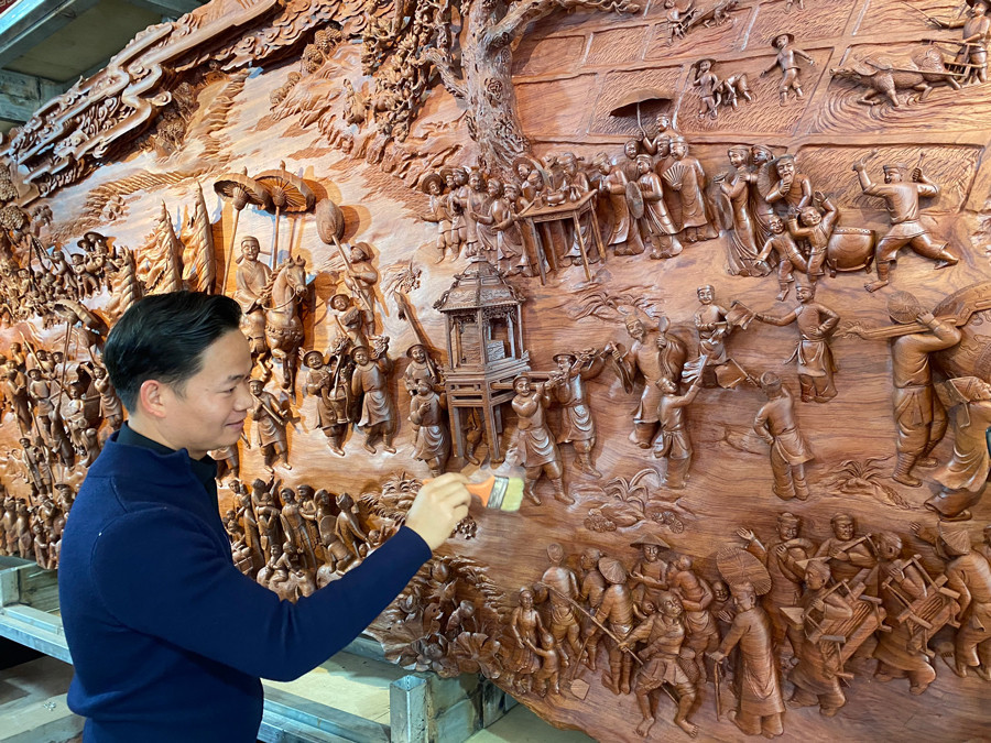 Phía sau bức tranh gỗ ‘Vinh quy bái tổ’ vừa lập 2 kỷ lục Việt Nam