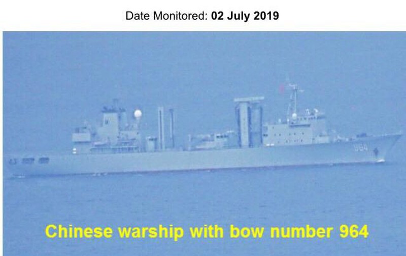 Chiến hạm Trung Quốc có số hiệu 964. (Ảnh:Bộ Tư lệnh Tây Mindanao) |