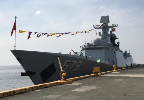 Tàu hộ vệ tên lửa dẫn đường Handan của hải quân Trung Quốc tới thăm Philippines. |