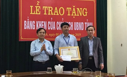 Ông Trần Công An tại buổi lễ trao nhận bằng khen của Chủ tịch UBND tỉnh Hà Tĩnh |
