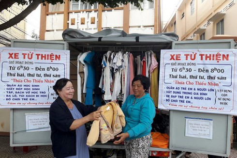 Mọi người đến đây có thể lựa cho mình món đồ vừa và hợp với họ”- cô Duyên tươi cười bảo. Ngoài ra, vào các ngày khác, chiếc xe tải lưu động này sẽ tiếp tục di chuyển đến các địa điểm khác.
