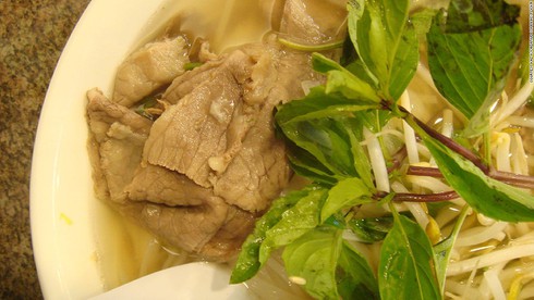 Món phở nằm ở vị trí thứ 20 trong danh sách. CNN giới thiệu đây là món mì gạo cho vào nước dùng kèm thêm thịt bò hoặc thịt gà với các loại rau gia vị như hành. CNN ca ngợi món phở của Việt Nam thực sự rất thơm ngon.