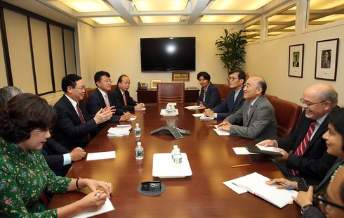 Tổng Giám đốc Kristalina Georgieva cho biết WB rất coi trọng quan hệ hợp tác với Việt Nam; đánh giá cao sự phát triển mạnh mẽ của Việt Nam trong những năm qua, nhất là tăng trưởng kinh tế gắn với phát triển bền vững; nhấn mạnh WB sẽ tiếp tục hỗ trợ Việt Nam đạt được các mục tiêu phát triển. Theo đó, WB đề nghị Việt Nam xem xét tập trung đầu tư vào các lĩnh vực phục vụ phát triển bền vững như nguồn nhân lực, chăm sóc y tế, ứng phó với biến đổi khí hậu, quản lý nguồn nước v.v… và sẽ xem xét những hình thức tài khoá phù hợp với Việt Nam. Các cơ quan liên quan của WB sẵn sàng làm việc trực tiếp với các đối tác Việt Nam để cụ thể hoá các chương trình, kế hoạch này.