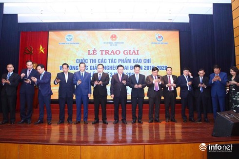 Đại diện nhóm tác giả của Văn phòng Infonet Miền Trung và Tây Nguyên nhận giải Khuyến khích. |