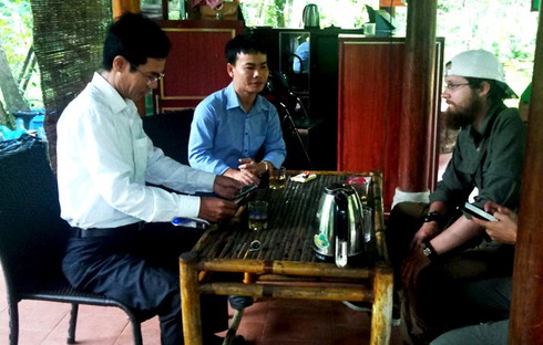 Nhân viên điểm du lịch trao trả tài sản cho anh Jacob Allan Warnor - du khách quốc tịch Mỹ. (Ảnh N.K) |