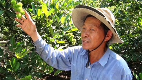 Ông Phạm Minh Đức xã Gia Kiệm làm giàu nhờ vườn chôm chôm của gia đình. |