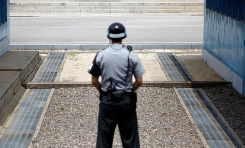 Một người lính Hàn Quốc tại khu phi quân sự ở làng Panmunjom, Hàn Quốc. Ảnh: Reuters. |