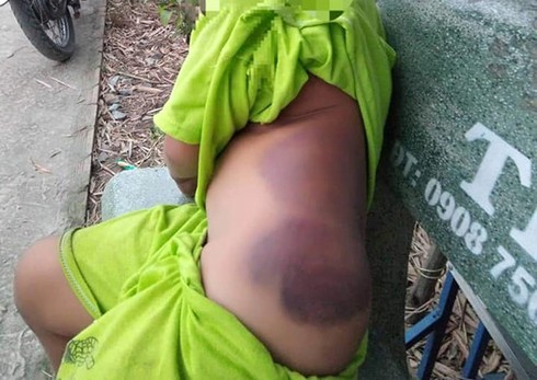 Vết bầm trên người bé trai bị cô Vui đánh. Ảnh: Hữu Danh |