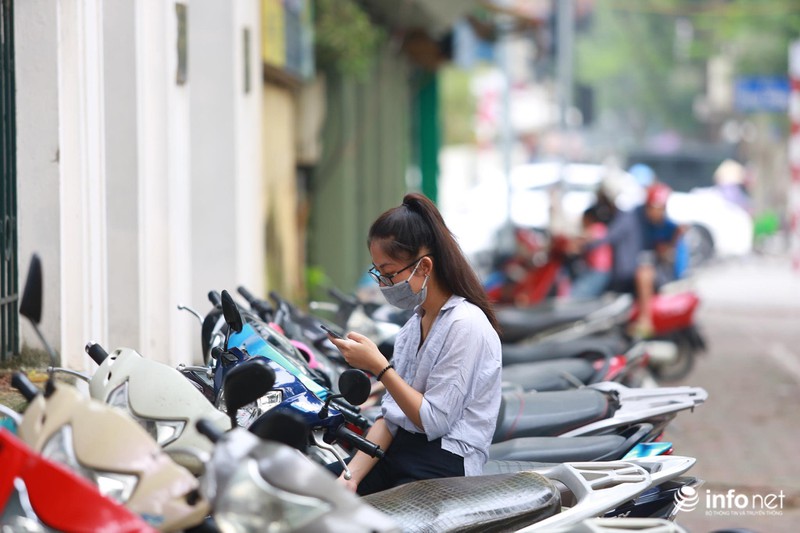 Trong lúc chờ thí sinh, phụ huynh tranh thủ lướt web |